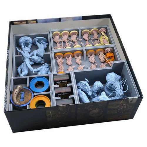 Insert compatible with Blood Rage, including the Mystics of Midgard, Gods of Asgard, 5th Player Extras, and the Promos Box expansions. The design provides both efficient storage and improved game play. Many of the trays can be utilised during the game, and they greatly aid set-up and clear-away times. The rules and boards act as a lid on top of the trays.