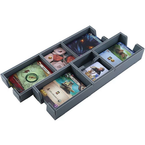 Insert compatible with Lost Ruins of Arnak. The design provides both efficient storage and improved game play. Many of the trays can be utilised during the game, and they greatly aid set-up and clear-away times.