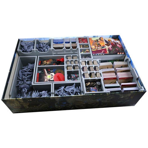 Official insert compatible with Middara: Unintentional Malum Act 1. The design provides both efficient storage and improved game play. The trays can be utilised during the game, and they greatly aid set-up and clear-away times. The rule books act as a lid on top of the trays.