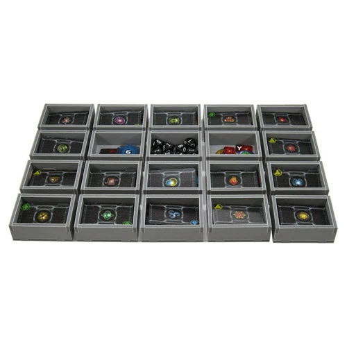 Insert compatible with Twilight Imperium (4th Edition), and has space provided for future expansions. The design provides both efficient storage and improved game play. Many of the trays can be utilised during the game, and they greatly aid set-up and clear-away times. The rules and boards act as a lid on top of the trays.