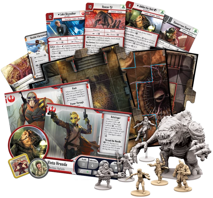 Fight alongside smugglers and bounty hunters in Jabba’s Realm! This expansion offers a new campaign with sixteen brand-new missions that explore the seedy underbelly of the galaxy and the worlds of the nefarious Hutt lords. Work alongside Jabba the Hutt for the welfare of your family as you oppose new forces such as the nimble Jet Troopers, powerful Gamorrean Guards, and even a ferocious Rancor! Meanwhile, the forces of the Rebellion swell with three all new heroes and the heroic Luke Skywalker, while new map tiles, items, classes, and rewards bring you deeper into the Star Wars adventure.