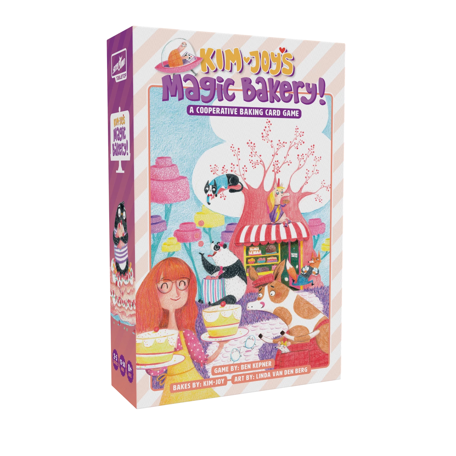 Kim-Joy’s Magic Bakery is a light cooperative card game for 2-5 players that tells an adorable story over 10 unique scenarios. No baking experience required!
