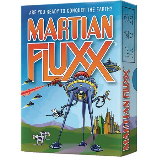 Are you ready to conquer the earth? Martian Fluxx is a classic monster story in ever-changing card game form. It’s an Invasion from the Planet Mars! The players are the Martians determined to destroy the Pathetic Humans who are keeping them from winning. It’s got Flying Saucers, Giant Tripod War Machines, Tentacles, Ray Guns, a Mothership, and of course, a Space Modulator. Be careful – you don’t want your Humans escaping from the Abduction Chamber!