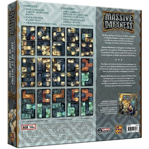 The Quest of Crystal & Lava is a 6-Quest campaign for Massive Darkness, using the Crystal and Lava tiles to present a brand-new adventure through a wondrous and deadly setting!