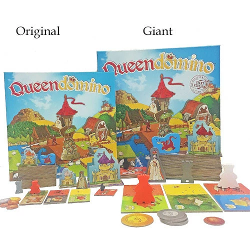 Queendomino is a game completely independent from Kingdomino, while offering a choice of more complex challenges. Two to four players can play Queendomino independently, but also in connection with Kingdomino, allowing games with 4 players for 7×7, or up to 6 players for 5×5.
