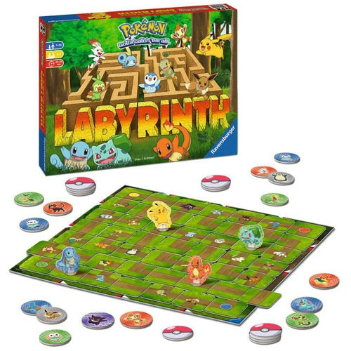 Explore the labyrinth with Pikachu, Squirtle, Charmander, or Bulbasaur to find Eevee, Gengar, and more! See which Pokémon you need to catch next, then shift the maze to reach them. Be the first to catch all the Pokémon on your Poké Ball tokens and return to your starting place to win!