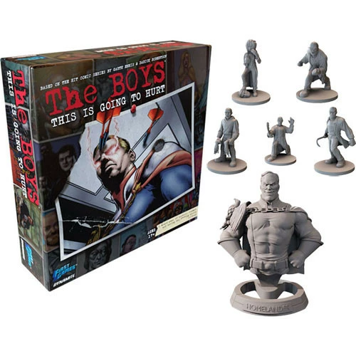 This Deluxe Edition includes card sleeves, the Homelander Bust, and character miniatures.
