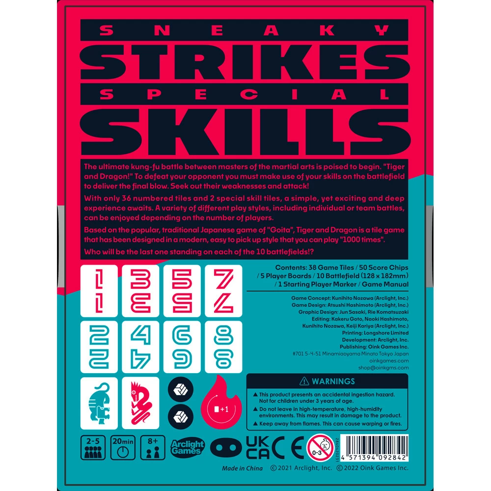 With only 36 numbered tiles and 2 special skills tiles, a simple yet exciting and deep experience awaits. A variety of different play styles, including individual or team battles, can be enjoyed depending on the number of players.