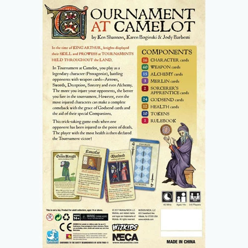 In Tournament at Camelot, you play as a legendary character (Protagonist), battling opponents with weapon cards – Arrows, Swords, Deception, Sorcery and even Alchemy. The more you injure your opponents, the better you fare in the tournament. However, even the most injured characters can make a complete comeback with the grace of Godsend cards and the aid of their special Companions.