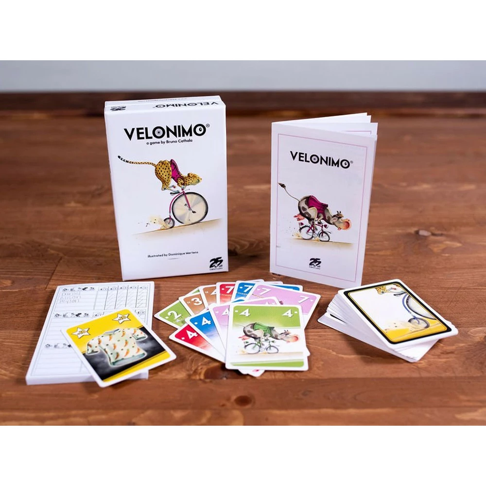 The card game Velonimo allows you to depict the merciless struggle in the animal world for the distinctive and highly prized “petits pois-carottes” jersey rewarded to the best climbing cyclist. This trick taking game features ultra simple rules for an absolutely addictive play experience.