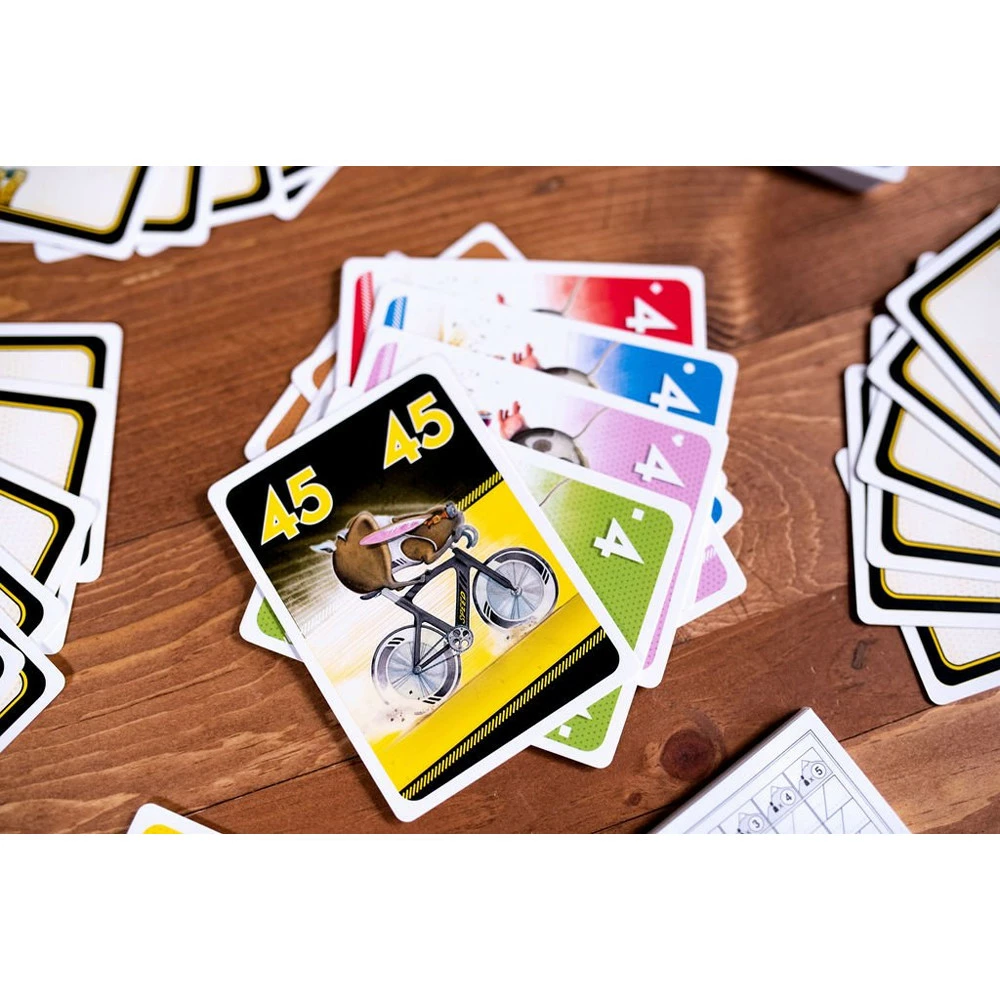 Goal of the Game: Race to the summit to score as many points as possible and win the coveted jersey. To win a race, you must be the first player to get rid of all your cards. Racer cards may be played alone or in specific combinations of the same color or same value. There are also breakaway specialist cards which work alone to speed ahead of the pack.